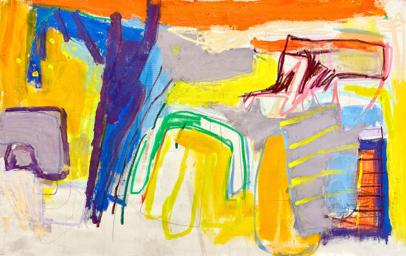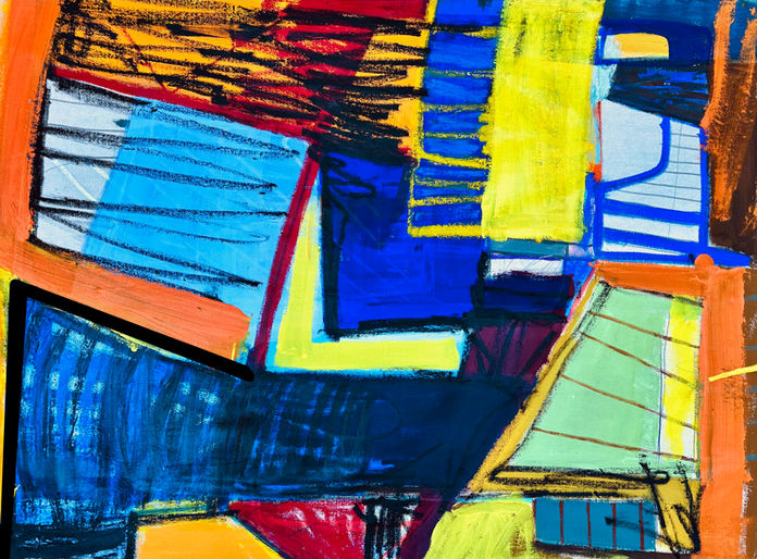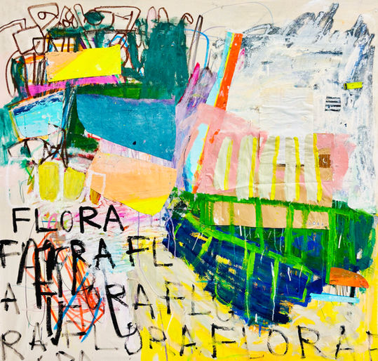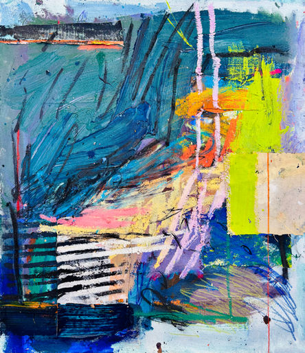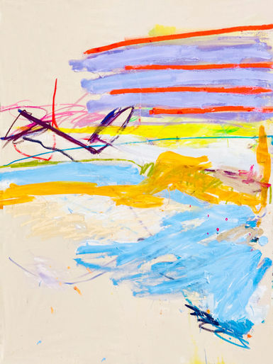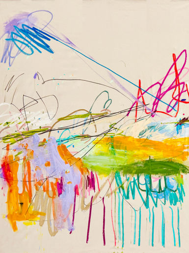 Acrylics, oil sticks and pastels on raw cotton canvas